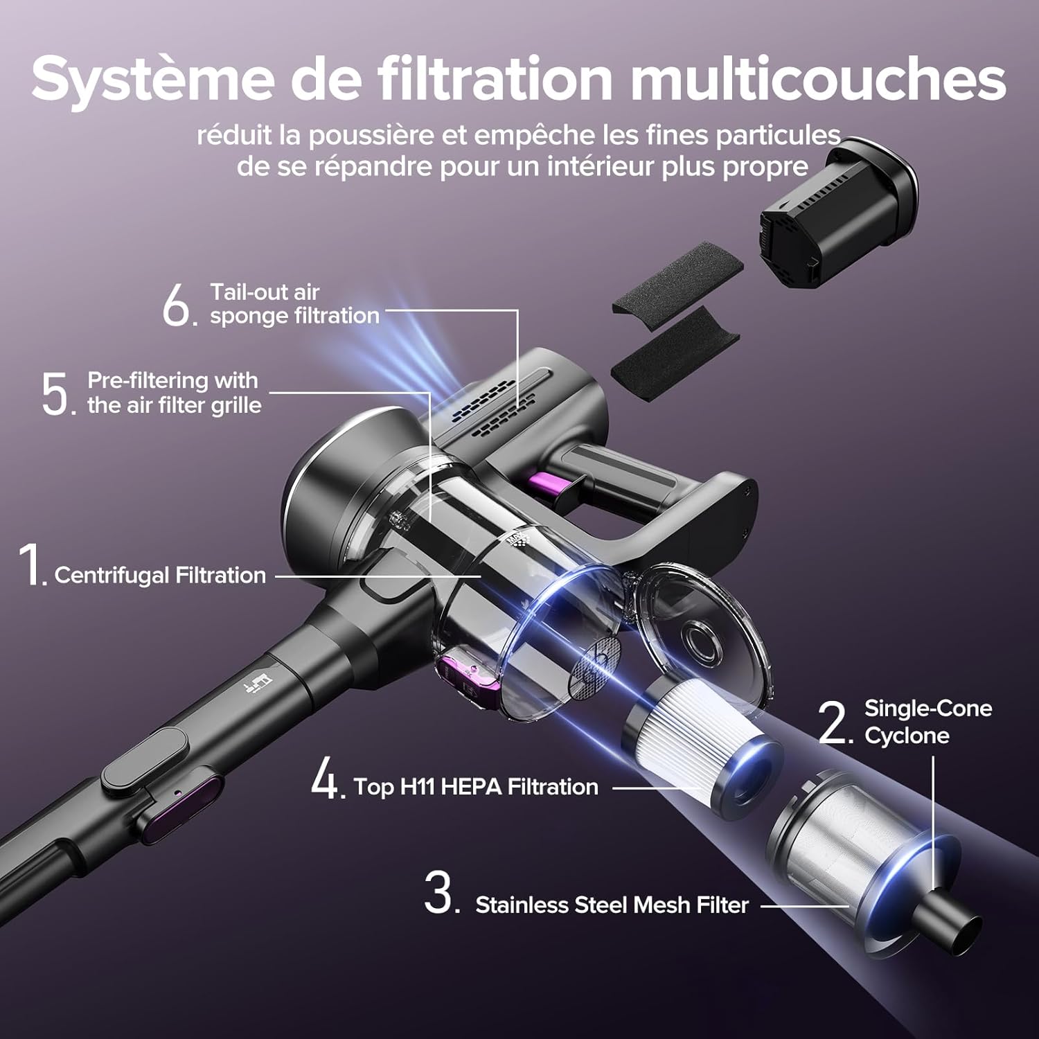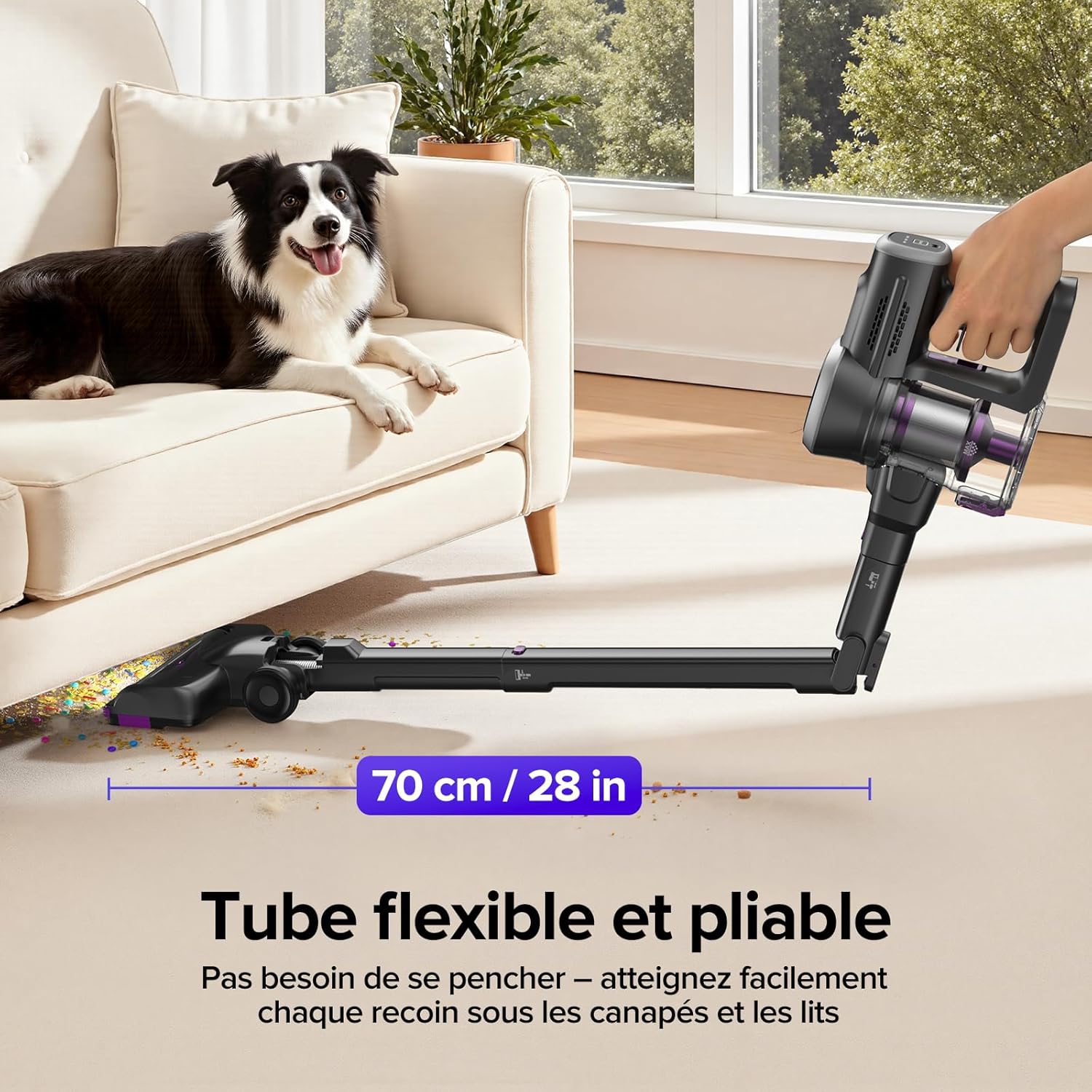 Aspirateur sans fil avec tube flexible, moteur brushless et filtration HEPA