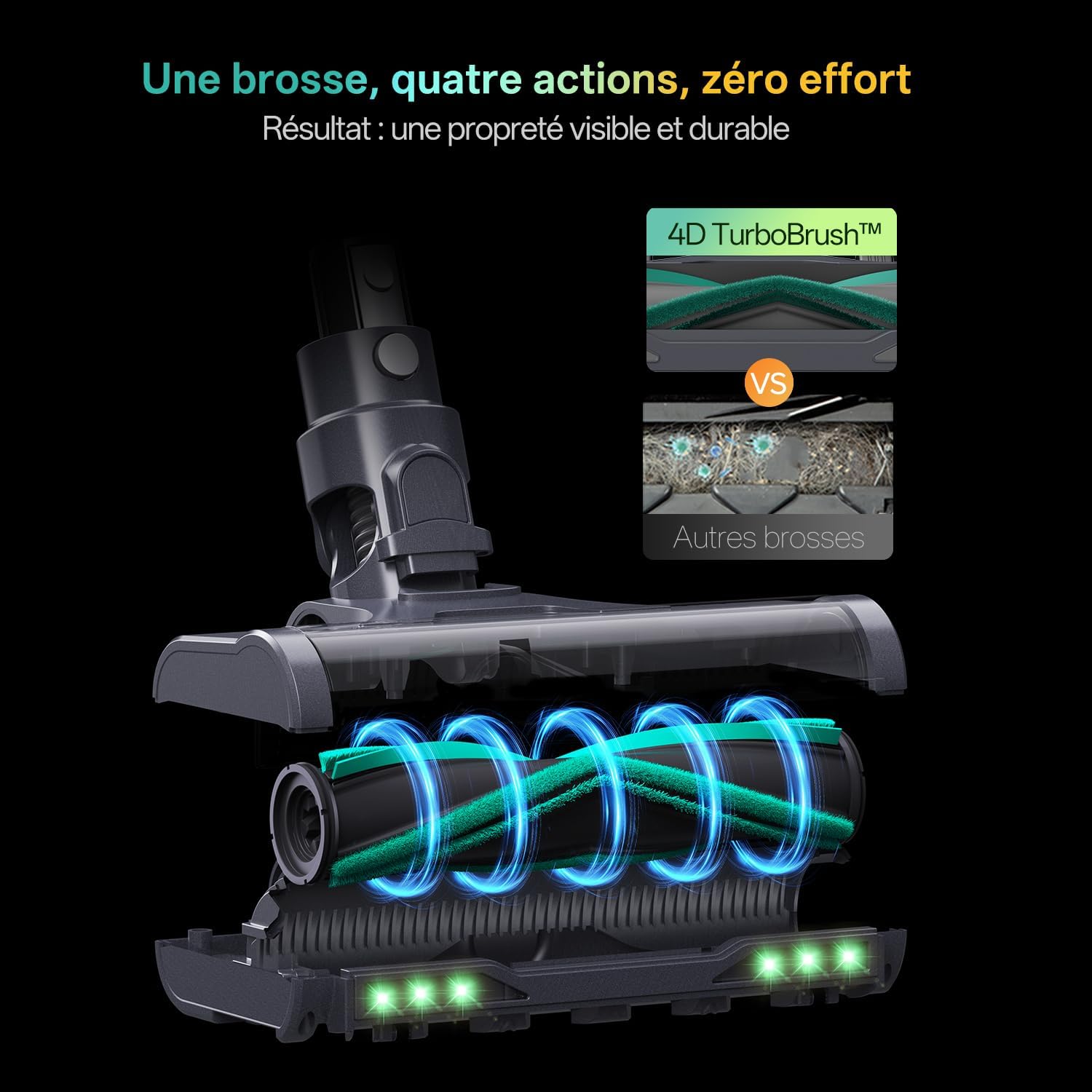 Notre solution comprend une brosse TurboBrush, des lames anti-enchevêtrement, des bandes en caoutchouc, des poils rigides et des poils souples. Cette configuration empêche l’accumulation de cheveux et de poils d’animaux sur la brosse. Elle assure une extraction efficace de la poussière incrustée dans les tapis et les joints, tout en capturant les particules fines.