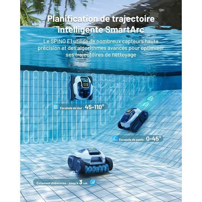 L’aspirateur fond piscine sans fil représente une solution de nettoyage automatisée destinée aux bassins enterrés, hors-sol et semi-enterrés. Fonctionnant sur batterie lithium sans aucune contrainte de câble, il assure un entretien complet du fond, des parois et de la ligne d’eau en un seul cycle. Son pilotage via application mobile et sa trajectoire SmartArc™ en font un outil technique de gestion autonome de la propreté d’un bassin.