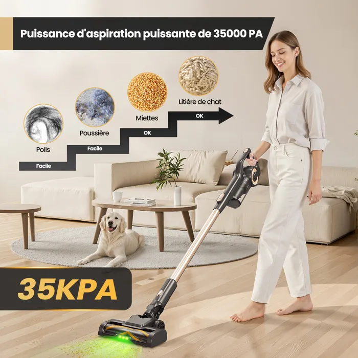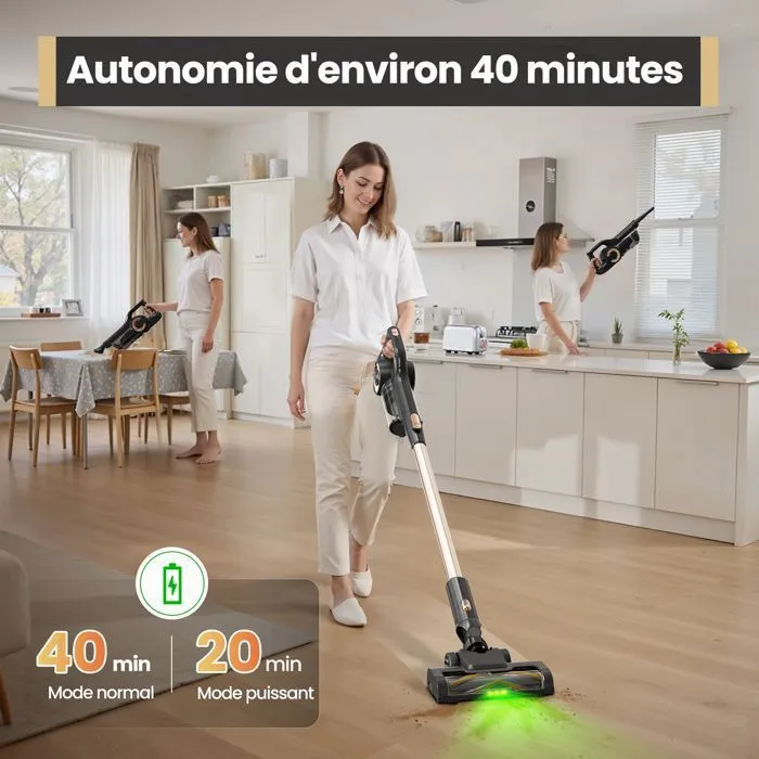 Aspirateur Balai Sans Fil à avec Puissance 35 000 Pa et Autonomie 40 Minutes