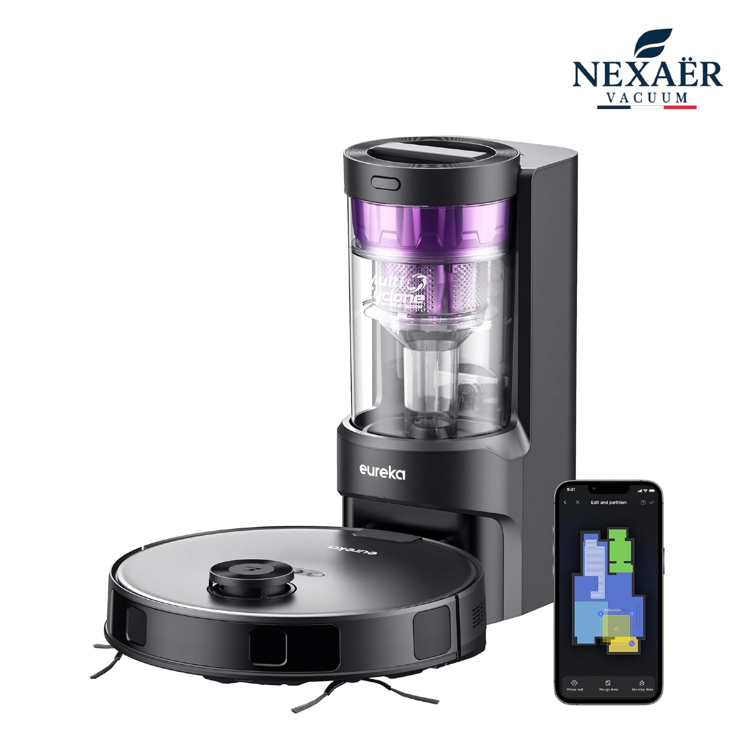 Aspirateur Laveur Robot avec station de vidage cyclonique et navigation LiDAR