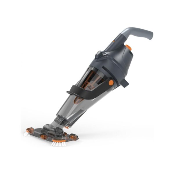 Cet aspirateur est adapté aux piscines hors-sol et aux spas d’une longueur maximale de 7 mètres. Il traite le fond, les marches et les zones difficiles d’accès. La tête pivotante équipée de roulettes permet d’orienter précisément l’aspiration sans effort. Des brosses amovibles en nylon sont incluses, dont une brosse dédiée au nettoyage des spas. La compatibilité avec un manche standard est assurée via un connecteur fourni, le manche restant à acquérir séparément.