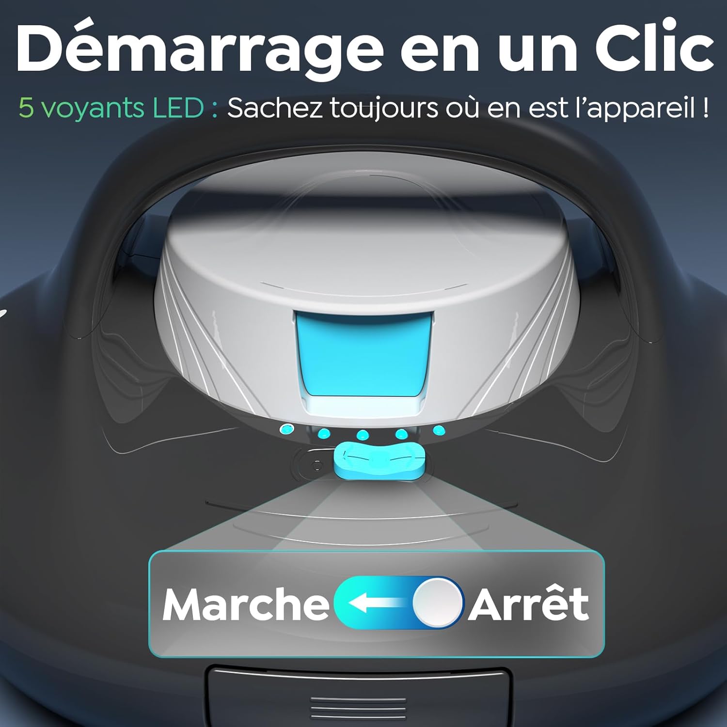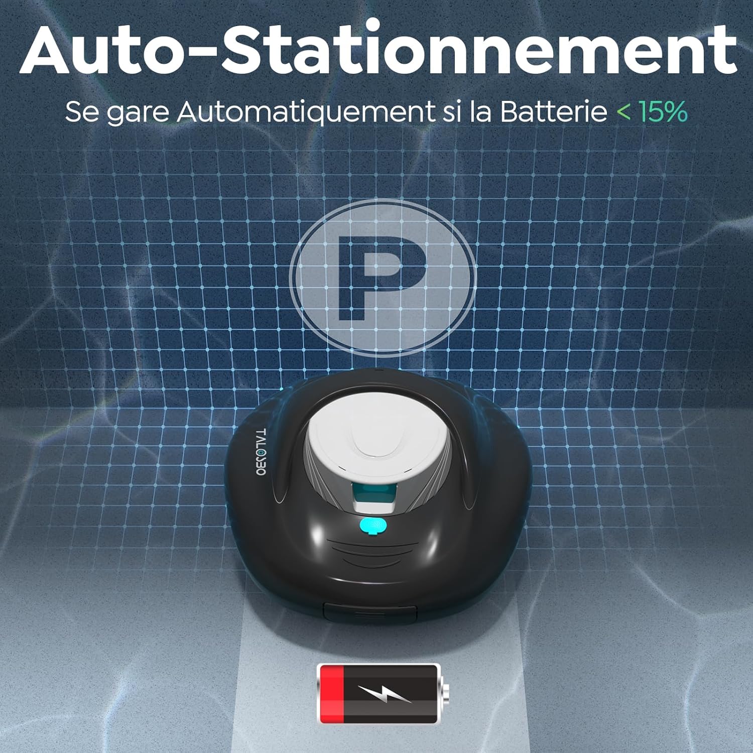 Le contrôle de l’unité s’effectue via une interface tactile simplifiée permettant un démarrage immédiat. Lorsque le niveau de charge descend sous le seuil critique de 15 %, le dispositif active sa fonction de stationnement intelligent. Le robot se dirige alors de manière autonome vers le bord du bassin pour faciliter sa récupération.