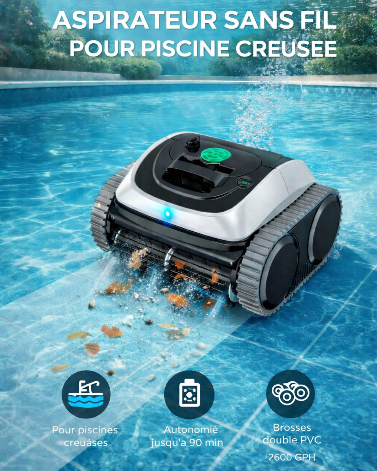 Ce dispositif technique assure une couverture complète des bassins enterrés grâce à ses modes de navigation avancés et sa puissance d’aspiration constante. L’intégration de cet Aspirateur Sans Fil Piscine Creusée dans votre routine d’entretien garantit une eau limpide et des parois exemptes de dépôts sans aucune contrainte filaire.