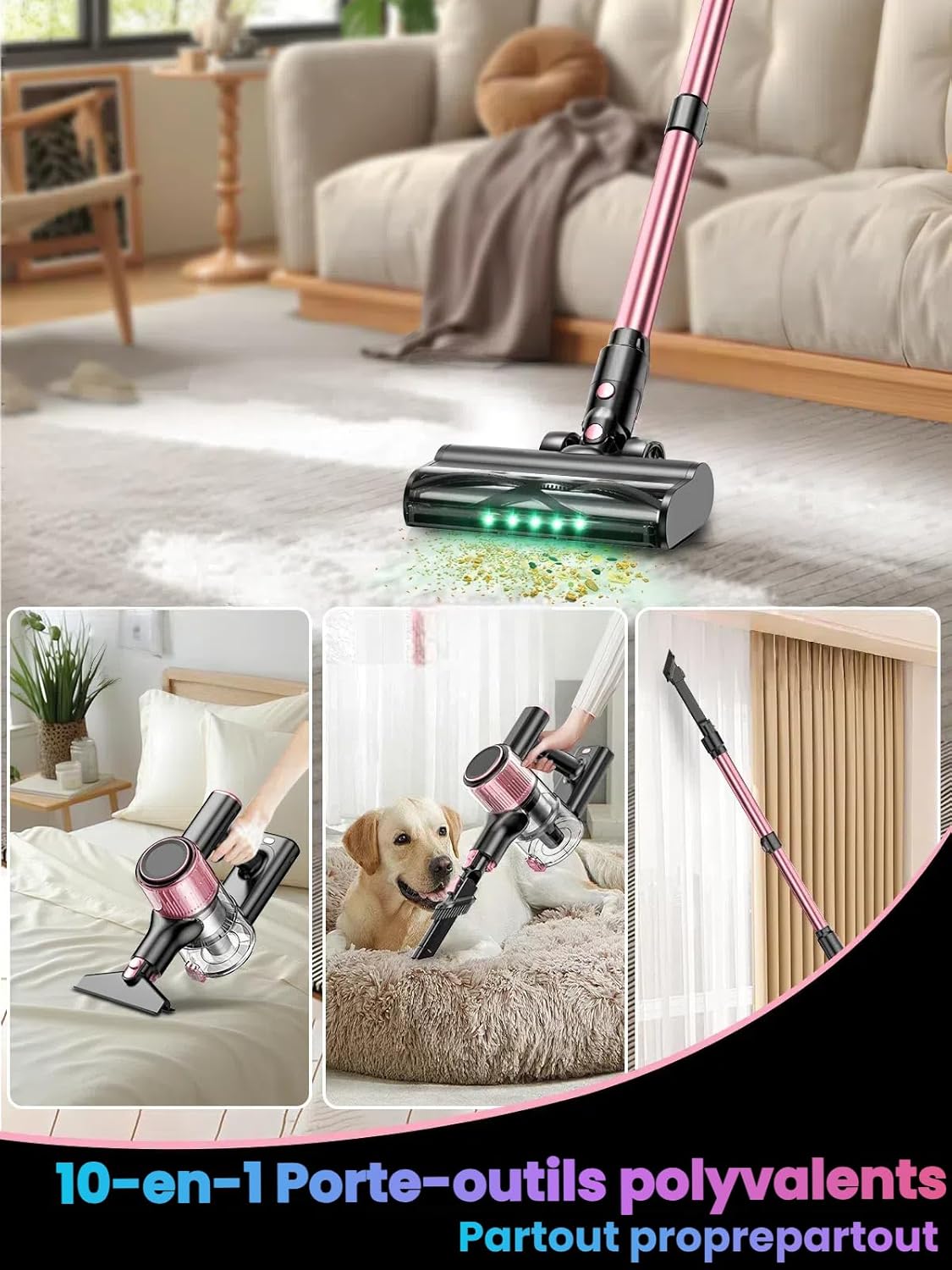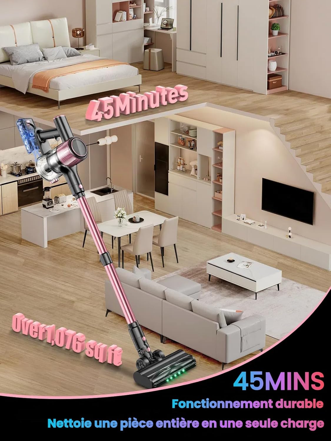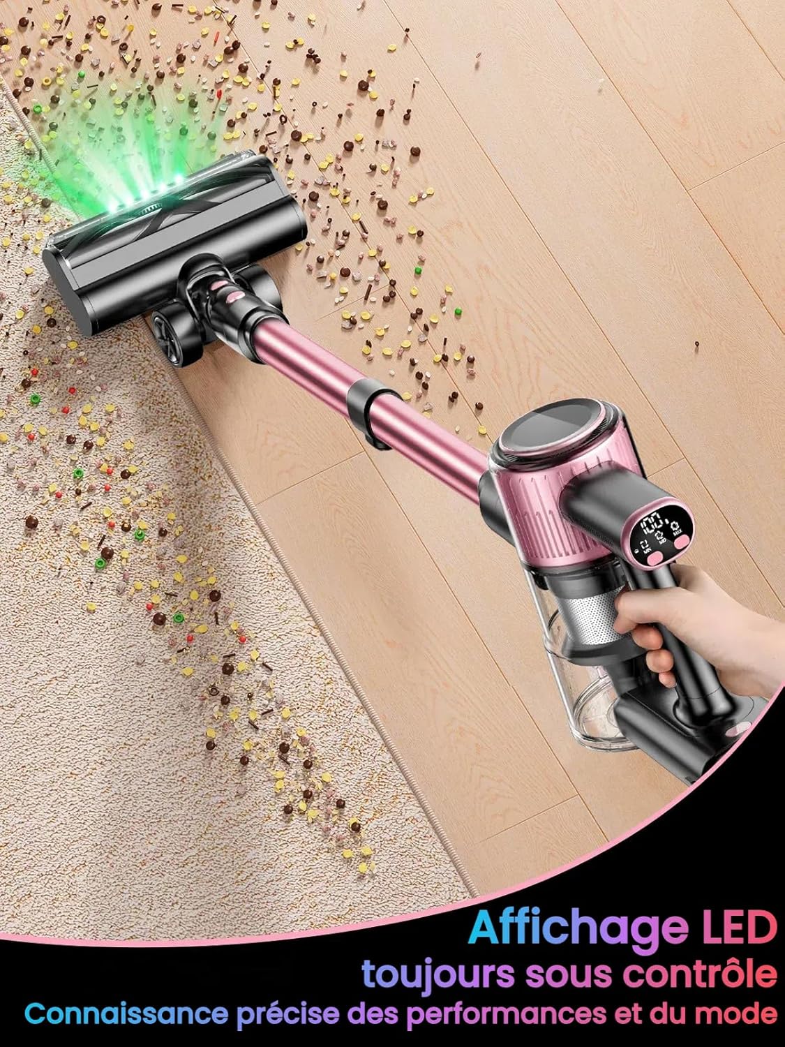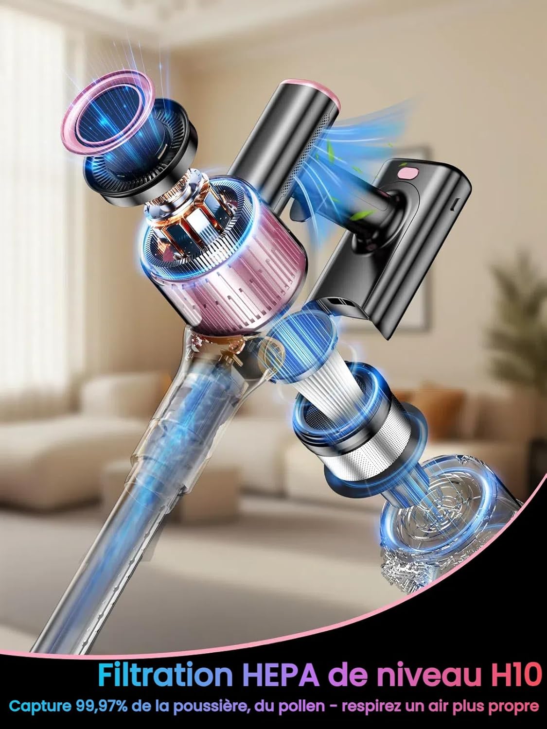 Aspirateur Balai Sans Fil pour Cheveux à haute performance cyclonique et filtration HEPA