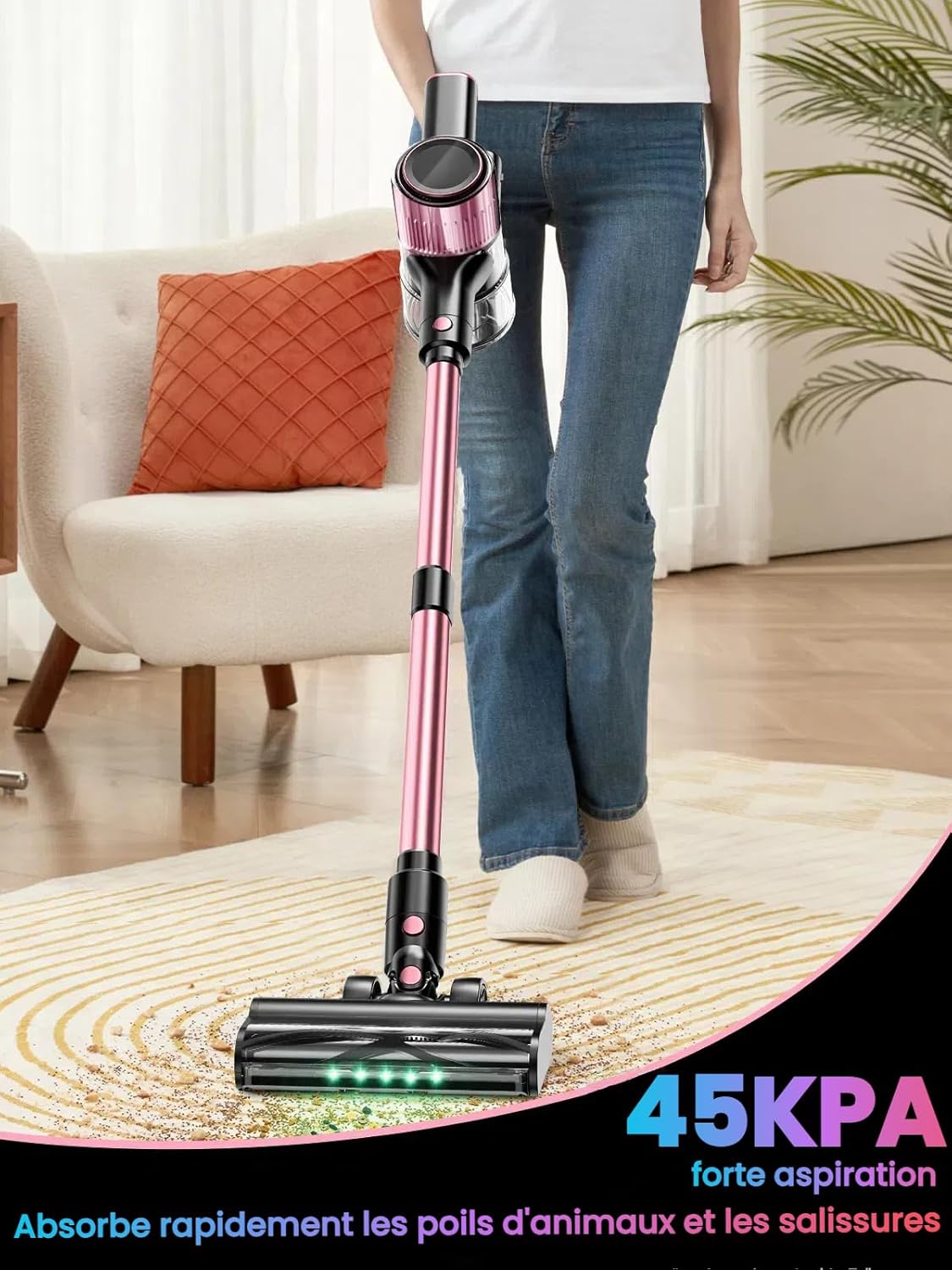 Cet équipement technique combine une puissance d’aspiration de 45kPa avec un système de filtration certifié pour l’entretien des surfaces domestiques. La brosse en V et le réservoir de grande capacité optimisent le ramassage des débris fibreux sans perte de performance. L’Aspirateur Balai Sans Fil pour Cheveux répond ainsi aux besoins de maintenance des sols et du mobilier.