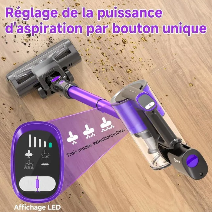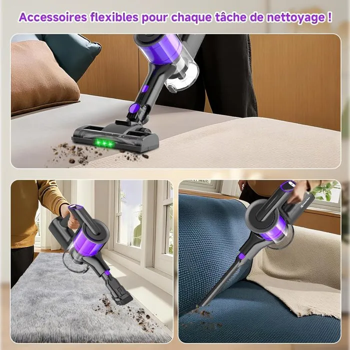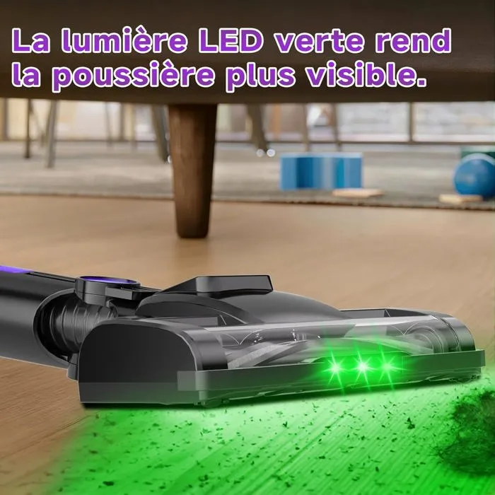 L’Aspirateur Balai Sans Fil Sol Dur et Voiture constitue une solution technique complète pour le nettoyage de surfaces dures, d’habitacles et de zones exposées aux poils d’animaux, associant autonomie prolongée, filtration hypoallergénique et ergonomie ajustable dans un format compact de 3,07 kg.