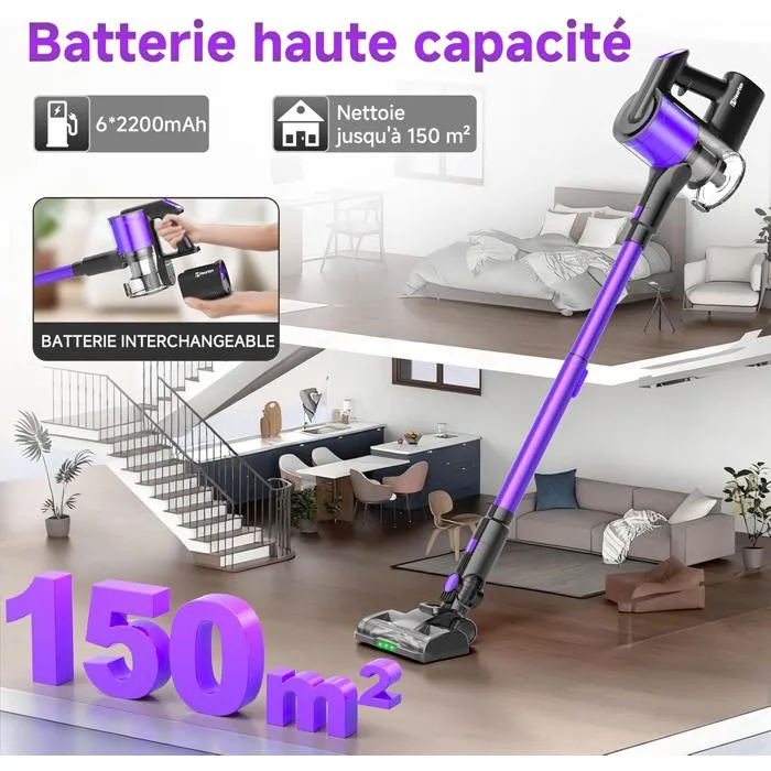 Aspirateur Balai Sans Fil pour Sols Durs et Voitures