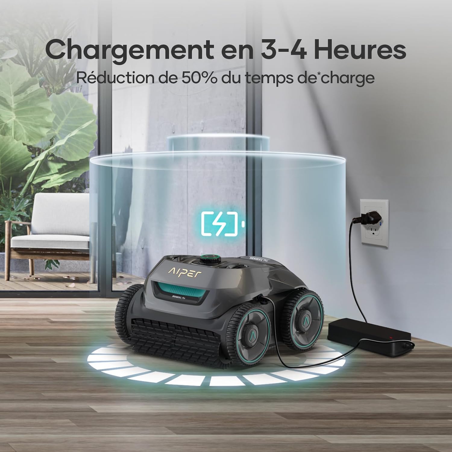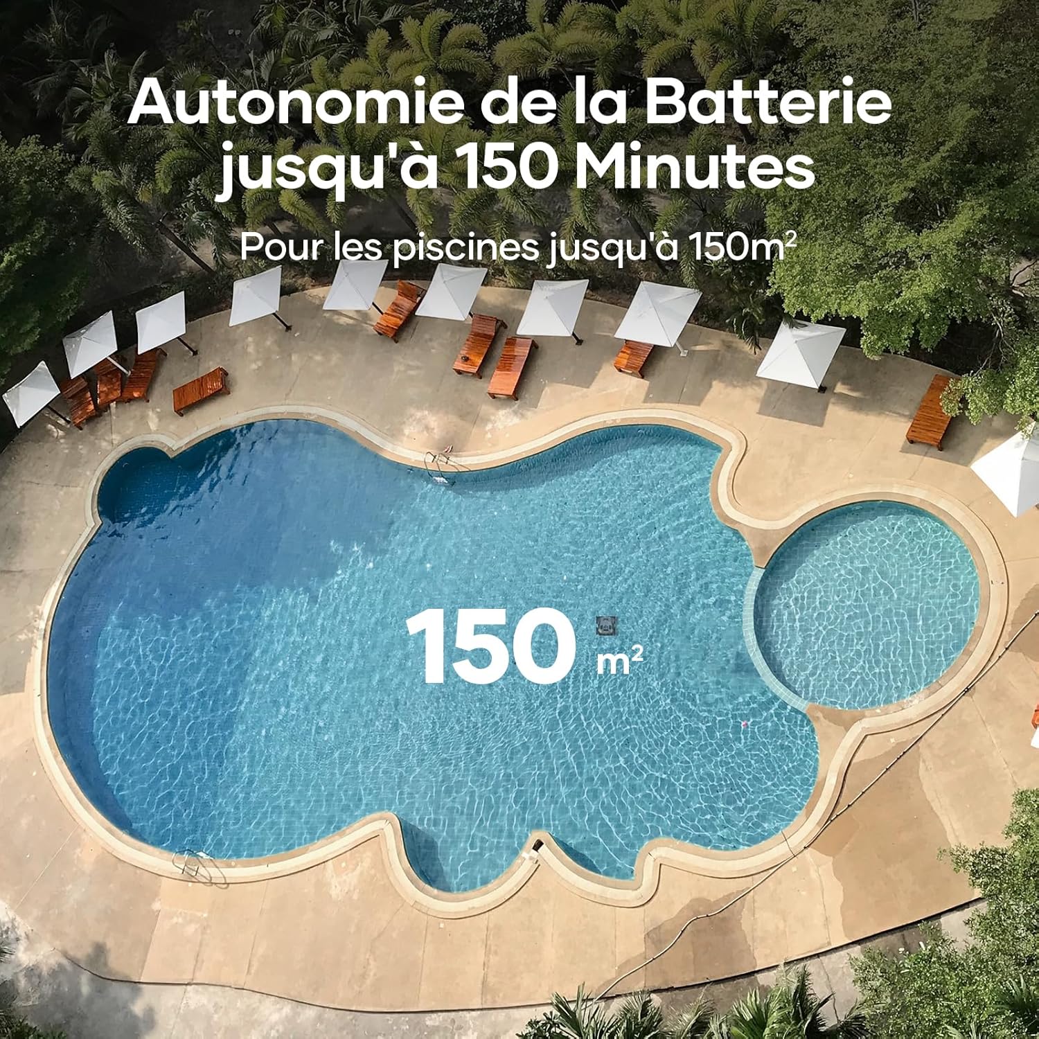 Ce modèle fonctionne grâce à une source d’alimentation par pile de haute capacité, éliminant les contraintes liées aux branchements électriques extérieurs. Avec une autonomie atteignant 150 minutes, notre unité peut couvrir des surfaces de baignade allant jusqu’à 150 m². Le cycle de charge complète s’effectue rapidement, nécessitant seulement entre 3 et 4 heures pour retrouver une pleine capacité opérationnelle. Cette liberté de mouvement est assurée par un pack de batteries pesant 1175 grammes, judicieusement intégré pour préserver l’équilibre de l’appareil.