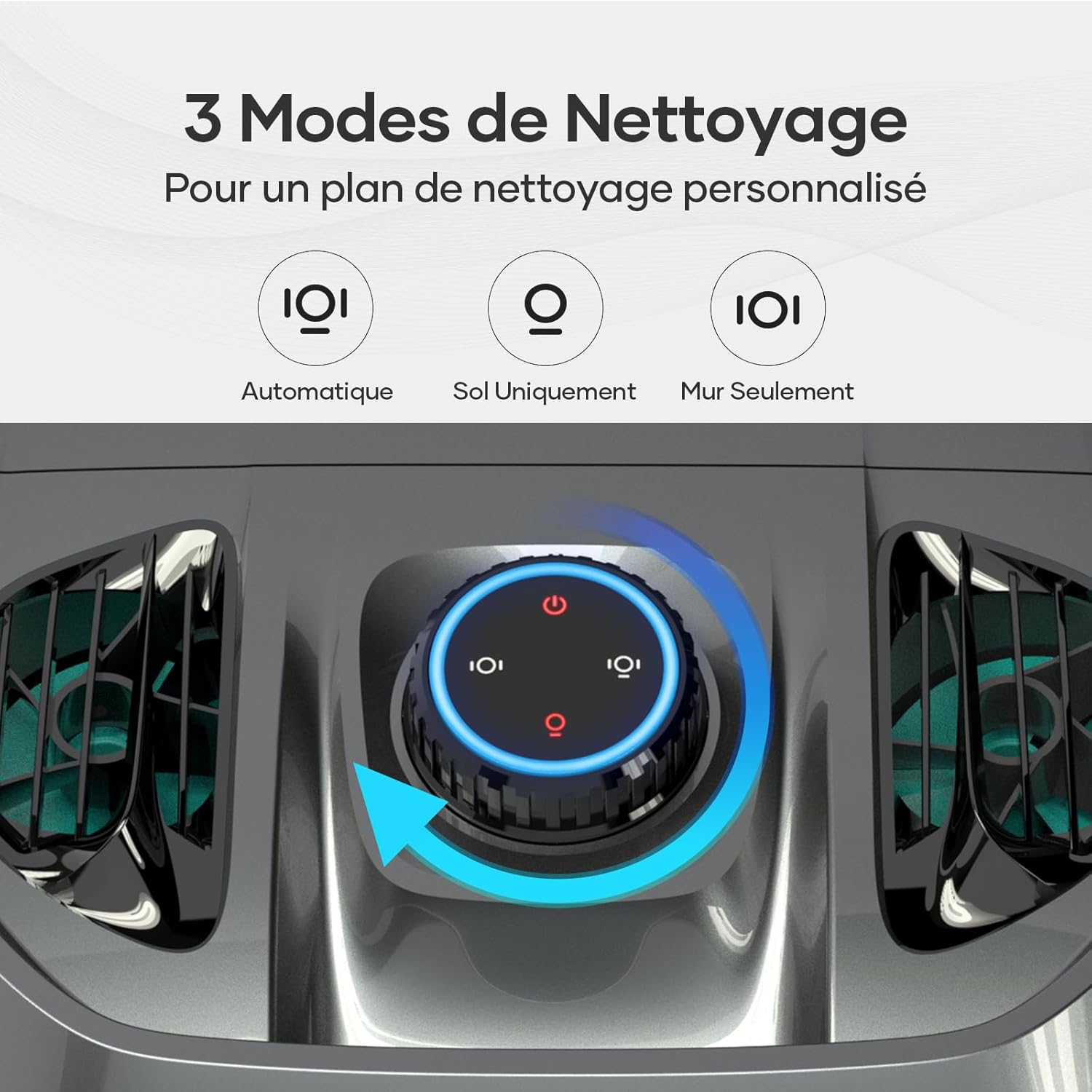 La technologie WavePath analyse la configuration de votre bassin pour établir un parcours de nettoyage optimisé et systématique. Vous avez la possibilité de sélectionner trois réglages distincts : mode sol, mode paroi ou un cycle automatique complet. Cette méthode de contrôle intelligente réduit la consommation d’énergie en évitant les passages redondants sur les mêmes zones. Le robot est particulièrement performant sur les revêtements en béton, en fibre de verre ou en vinyle.